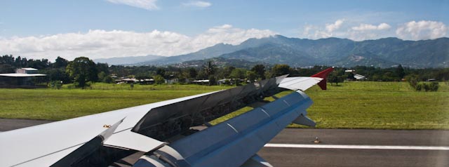 Heute müssen wir bereits um 3:00 Uhr morgens aufstehen, da unser Flug um 6:20 Uhr geht. Von Helga und Roger haben wir uns schon am Vorabend verabschiedet, so dass wir um 3:30 Uhr am Broadway stehen und uns ein Taxi heranwinken. Zuvor hielt eine schwazre Limousine, die uns für $ 50 zum Flughafen bringen wollte. Von diesen privaten Limo-Services wird aber generell abgeraten, da weder der Preis noch die Sicherheit garantiert ist. Am Flughafen verlief wieder alles problemlos, alle waren wieder sehr freundlich. Pünktlich hebt unsere Maschine der mittelamerikanischen Fluglinie TACA (Transportes Aéreos del Continente Americano)ab. Zur TACA-Gruppe gehört auch die LACSA (Lineas Aereas Costaricenses S.A), die offizielle Costa Ricanische Fluglinie. Die Flotte der TACA zählt zu den modernsten der amerikanischen Fluglinien und es ist eine der zuverlässigsten Fluglinien, daher sind die Flugpreise von Nordamerika nach Zentralamerika auch höher als die der nordamerikanischen Fluglinien. So verläuft der Flug problemlos, wir haben ausreichend Beinfreiheit, es gibt ausreichend Monitore ander Decke und der Service ist freundlich und gut. Réka sieht sich einen Film an, während Jörg ein bisschen schläft. Um 11:20 Uhr kommen wir in San José an. Am Flughafen erwartet uns der gleiche Transfer wie 2006. Allerdings nicht José Garmendia, sondern sein Partner, der uns mit ganzem Stolz seinen neuen Hyundaibus vorführt, den er erst wenige Tage besitzt. Wir haben Glück und kommen schnell in die Stadt, es gibt keine Staus, da heute Muttertag in Costa Rica ist. Wir checken wieder im Rincón de San José ein, das auch schon bei unserer letzten Reise unsere Bodenstation war. Wir sind sehr angetan von dem Hotel, nicht zuletzt weil es auch sehr zentral liegt. Die Innenstadt ist problemlos in wenigen Minuten zu Fuß erreichbar. Diesmal beziehen wir in Zimmer 28 unser Quartier. Wir waschen noch ein paar Klamotten, schreiben Emails nach Hause und erholen uns ein wenig. Wir bekommen einen Anruf von Carla, der Freundin eines Bekannten, den wir noch aus Deutschland kennen. Er hat für seine Freundin ein paar Sachen mitgegeben, die wir ihr gerne überreichen wollen. Wir machen aus, dass sie noch an diesem Abend ins Hotel kommt und sich die Sachen abholt. So haben wir noch ausgiebig Zeit in die Stadt zu gehen.